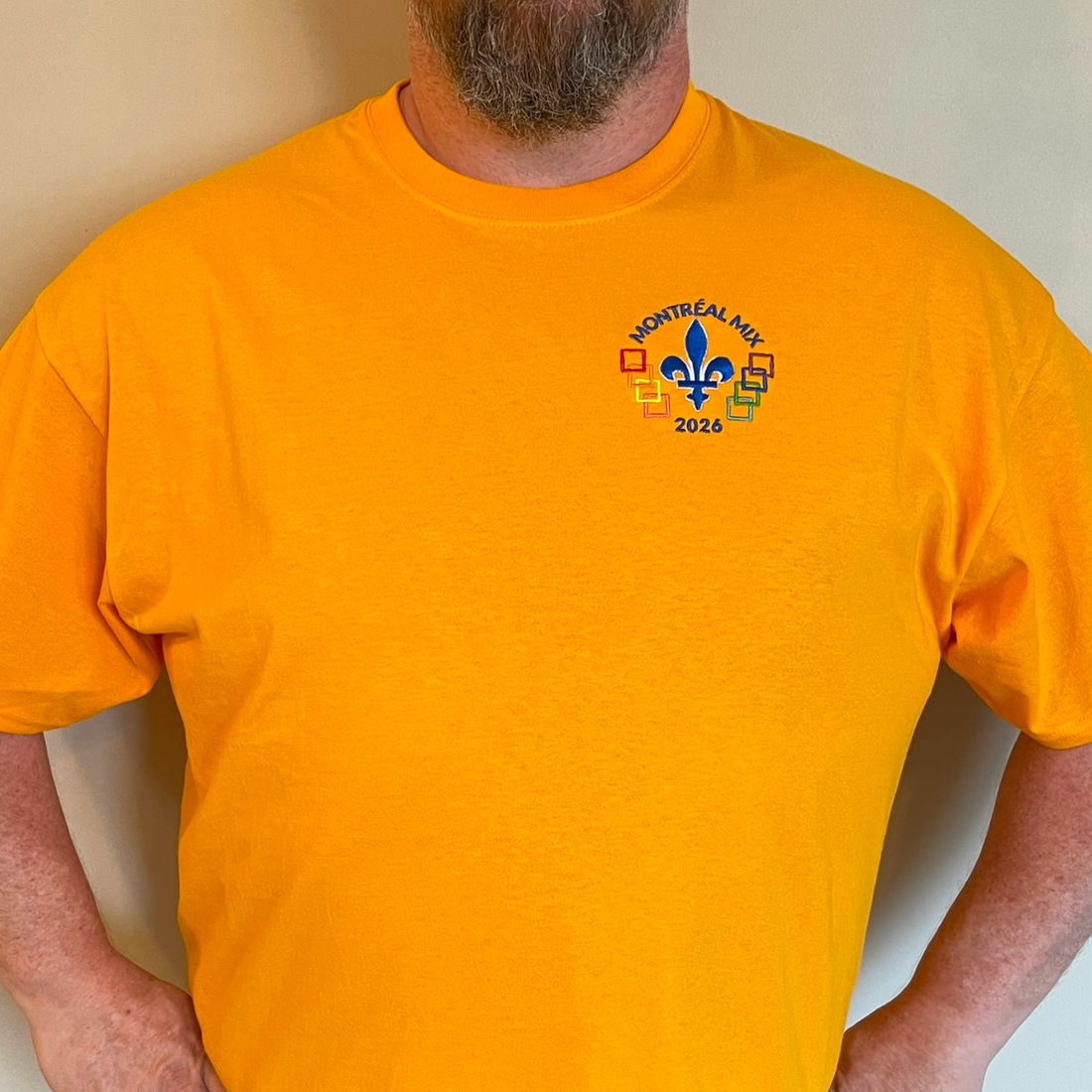 Pickup this comfortable and stylish convention embroidered t-shirt and let everyone know that you were in Montréal when we made square dancing history.